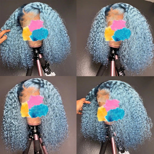 Cyan-Blue Colored Human Hair Wigs 99J Burgundy Lace Front Wig Natural Curly Human Hair Wig Highlight Wig Human Hair Peruvian Wig