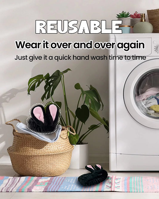 CHASIN’ RABBITS Spa Headband for Washing Face – Black Rabbit | Skincare Headbands Makeup Headband for Washing Face | Black Headband Hair Styling Accessories Face Wash Headband (8.26" X 5.5")